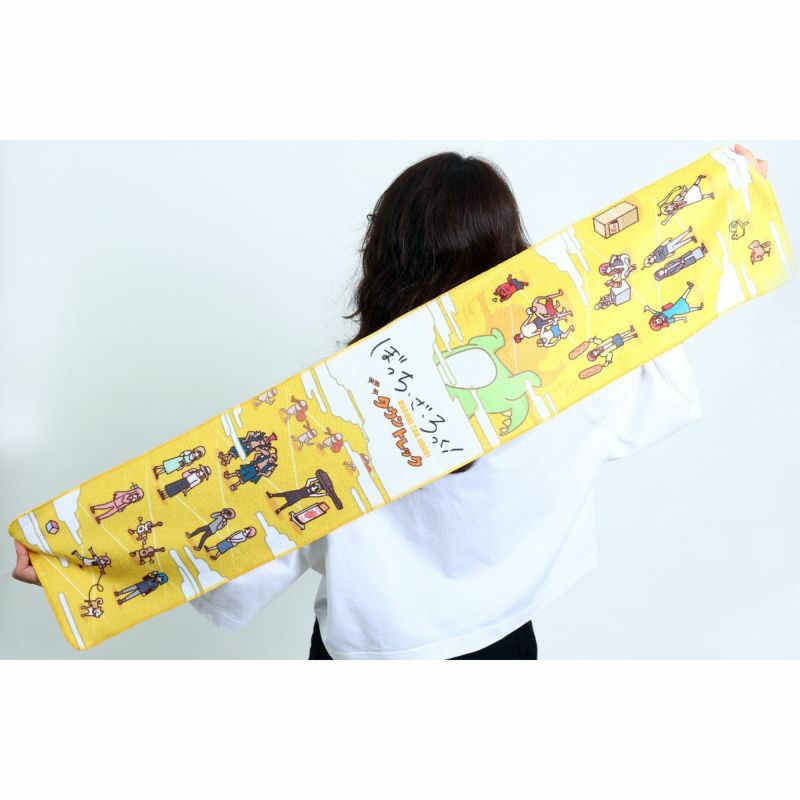 タウントレックのロゴ風にデフォルメされたキャラクターが勢揃いしたマフラータオル。