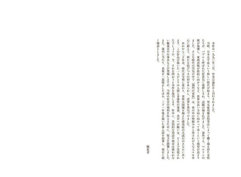 1980年代、直木賞候補の常連だった作家・落合恵子が1990年春、一冊の小説を世に送り出した。31年後の今の姿を加筆して復刊。