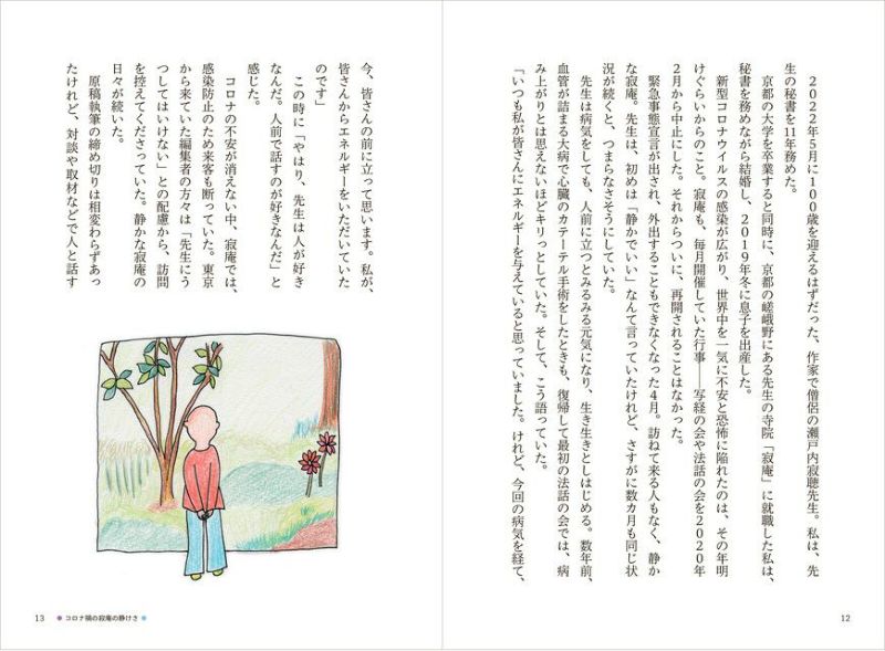 2021年11月に99歳で逝去した作家で僧侶の瀬戸内寂聴さん。その秘書を11年務めた瀬尾まなほさんが、愉快で刺激的で、時に切ない寂聴さんとの日々をつづった書き下ろしエッセイ。執筆途中で寂聴さんが急逝し、寂聴さんを看取った瞬間とその時の思いも、書き記した。2人の日常が目に浮かぶ、自筆のイラストも掲載。