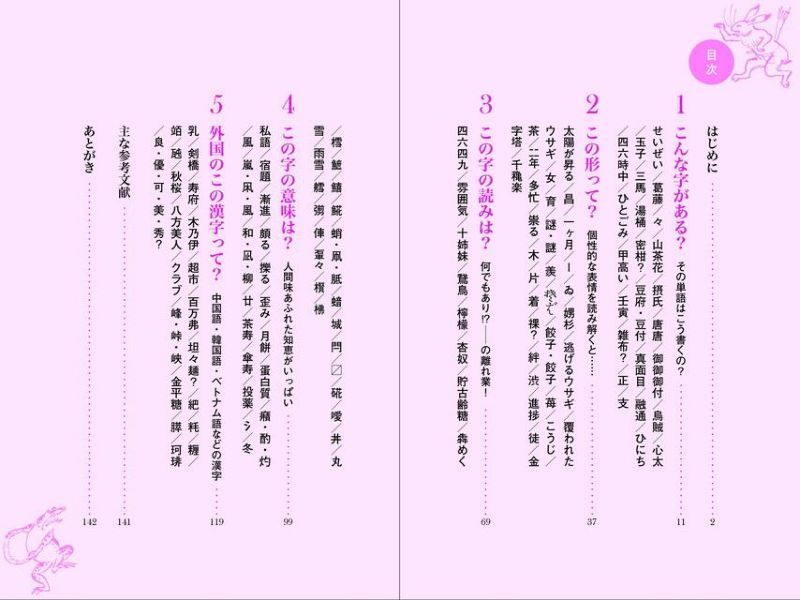 漢字の「書き方」「形」「読み方」「意味」「世界の漢字」の5章で構成。1ページ2問ずつ出題し、正解と丁寧な解説でアタマもスッキリ。イラストや写真、図表が加わり、ニガテな漢字もグッと身近に!