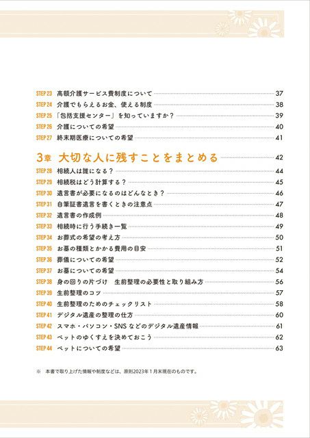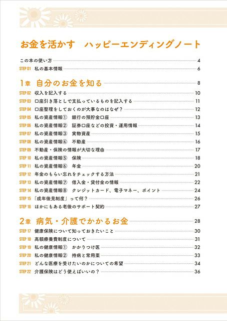 本書でエンディングに関するお金の情報を得ながら、自分のこととして記入していくことで、気持ちや資産を整理することができ、また、不安や問題点が見えてくることで、これからどのように生きていきたいか、資産をどのように整理するべきかなどを考えて行動できるようになります。