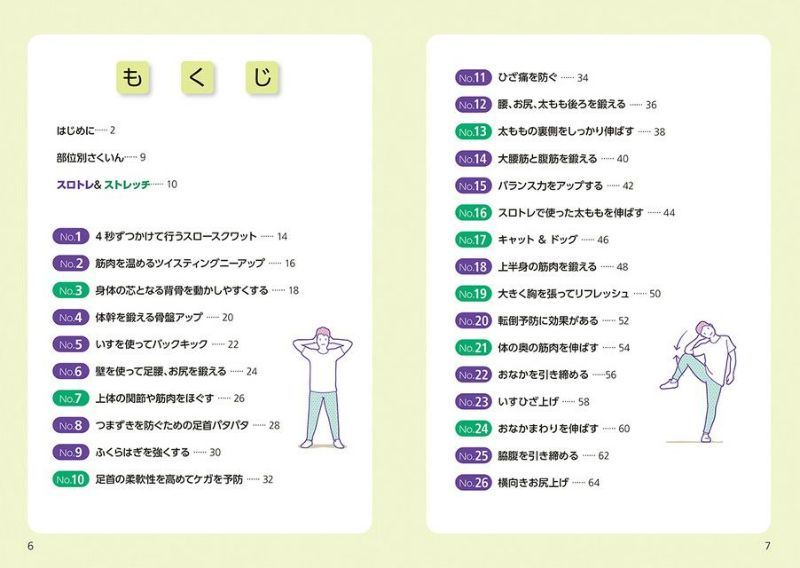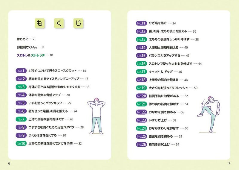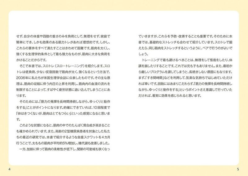 基礎的なストレッチと組み合わせることで効果も増すので、本書ではスロトレの開発者で筋肉研究の第一人者が厳選した25種のスロトレと15種のストレッチを紹介しています。各々の鍛えたい場所を、辛くならない程度に鍛え、伸ばしてあげましょう。