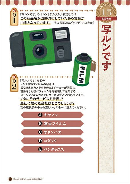 あの懐かしい昭和のモノたちにまつわるクイズを解きつつ、当時の記憶がその行間から立ち上ってくるような名コラムを読み、“あの頃”にどっぷりと浸ることのできる一冊となっています。
