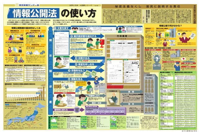 4月1日からいよいよ情報公開法が施行されます。情報公開法は国の行政機関に蓄積された膨大な情報の「宝庫」を開くカギになります。日本の行政機関はとかく閉鎖的で秘密主義だと批判されてきました。民主主義のかなめともいえる情報公開制度は、地方自治体で先行し、すでに定着してきています。ようやく重い腰を上げた国の情報公開制度について図解します。
