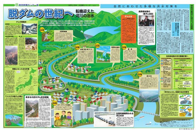 長野県知事の「脱ダム宣言」をはじめ、治水の要とされてきたダム建設への反発が全国で高まっています。自然破壊、堆砂などさまざまな問題を抱えたダムに頼らず、河川のはんらんを前提とした治水対策も模索され始めています。ダムを取り巻く最近の動きを図解します。