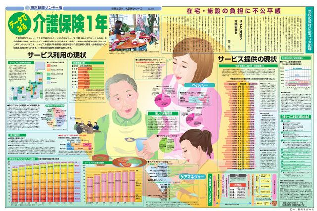 介護保険がスタートして1年が過ぎました。さまざまなサービスが選べるようになったものの、施設待機者は急増、在宅サービスの利用は思ったほど進まず、完全には家族の負担軽減の受け皿とはなり得ていないようです。サービスを提供する事業者の経営状態や介護従事者の待遇・労働環境などの問題も指摘されています。介護保険の現状と課題を図解します。