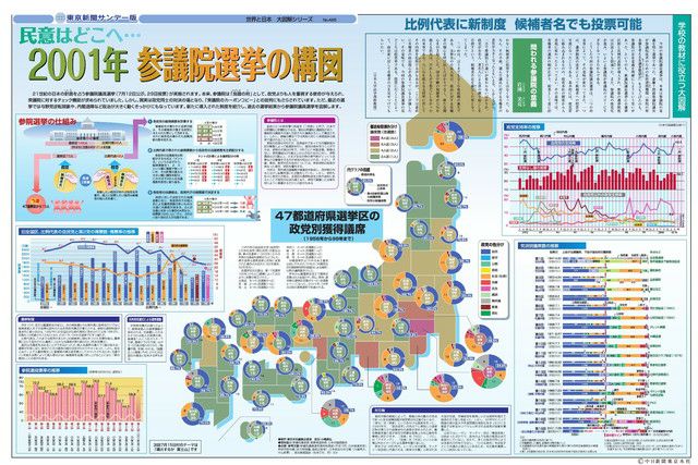 21世紀の日本の針路を占う参議院議員選挙(7月12日公示、29日投票)が実施されます。本来、参議院は「良識の府」として政党よりも人を重視する使命が与えられ、衆議院に対するチェック機能が求められていました。しかし、現実は政党同士の対決の場となり、「衆議院のカーボンコピー」との批判にもさらされています。ただ、最近の選挙では与野党逆転現象や、内閣退陣など政治が大きく動くきっかけにもなっています。新たに導入された制度を紹介し、過去の選挙結果から参議院議員選挙を図解します。