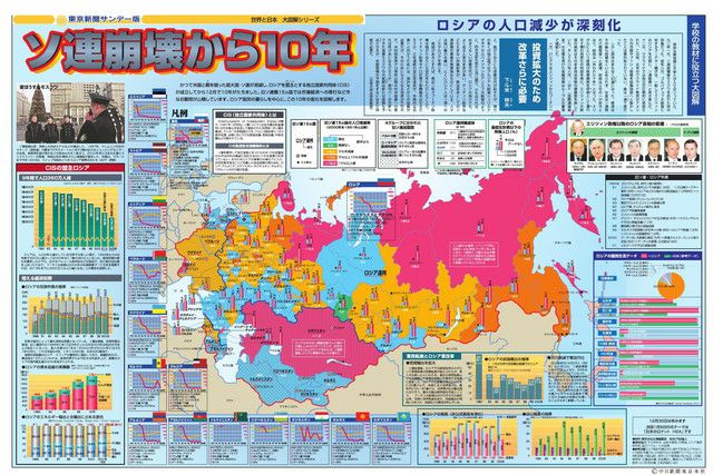 かつて米国と覇を競った超大国・ソ連が消滅し、ロシアを盟主とする独立国家共同体(CIS)が成立してから12月で10年がたちました。旧ソ連圏15カ国では市場経済への移行など今なお難問が山積しています。ロシア国民らの暮らしを中心に、この10年の変化を図解します。