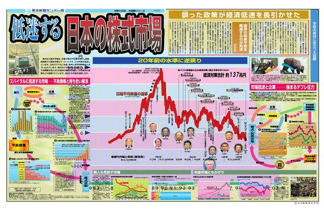 株式など資本市場は、企業が株式や社債を発行し直接、投資家から資金を得るマーケットです。この市場が低迷しています。日本だけでなく米国、欧州と世界同時株安とまでいわれています。株式など市場低迷の背景には、多額の不良債権を抱える日本経済の構造的問題と、世界経済の変調などが指摘されています。低迷する市場を図解します。