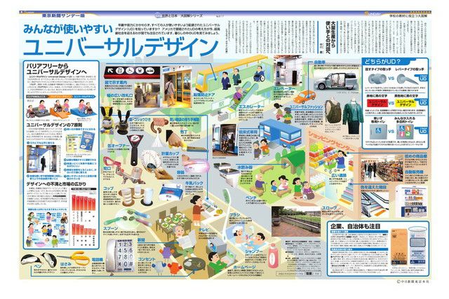 年齢や能力にかかわらず、すべての人が使いやすいよう配慮されたユニバーサルデザイン(UD)を知っていますか?アメリカで提唱されたUDの考え方が今、超高齢社会を迎えるわが国でも注目されています。暮らしの中のUDを見てみましょう。