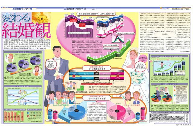 日本人の結婚観が変化しています。特に1990年前後のバブル経済を境に大きく変わってきました。以前は、ある年齢になれば結婚するというのが当たり前と思われてきました。しかし、晩婚化が進んでいるうえに、結婚しない非(未)婚も増えています。少子化の原因の一つと言われる結婚観の変化についてまとめました。
