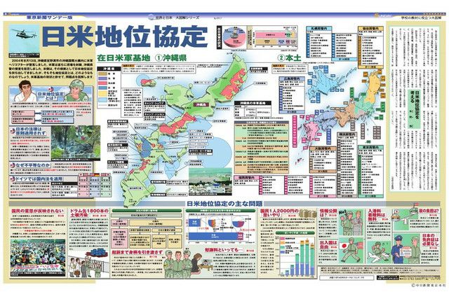 2004年8月13日、沖縄県宜野湾市の沖縄国際大構内に米軍ヘリコプターが墜落しました。米軍は直ちに現場を封鎖。沖縄県警の捜査を拒否しました。米側は、その根拠として日米地位協定を持ち出してきましたが、そもそも地位協定とは、どのようなものなのでしょう。米軍基地の現状と併せて、問題点を図解します。