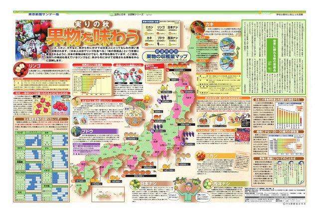 リンゴ、ミカン、カキなど、秋から冬にかけては日本人にとってなじみの深い果物が収穫されます。「日本人は目でリンゴを食べる」「味の芸術品」という言葉に象徴されるように、日本の果物は味だけでなく、色や形も優れています。ここ数年、海外への輸出も増えているリンゴなど、秋から冬にかけて収穫される果物を中心に図解します。