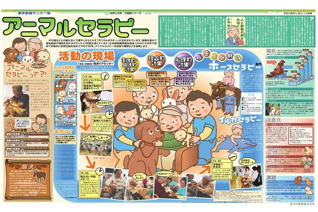 犬や猫などとの触れ合いで癒やしをもたらす「アニマルセラピー」が注目されています。動物を連れて福祉施設や病院を訪れるボランティア活動も増えています。日本動物病院福祉協会(JAHA)が日本で初めて本格的に訪問活動を始めて今年で20年。アニマルセラピーの効果や種類などを図解します。