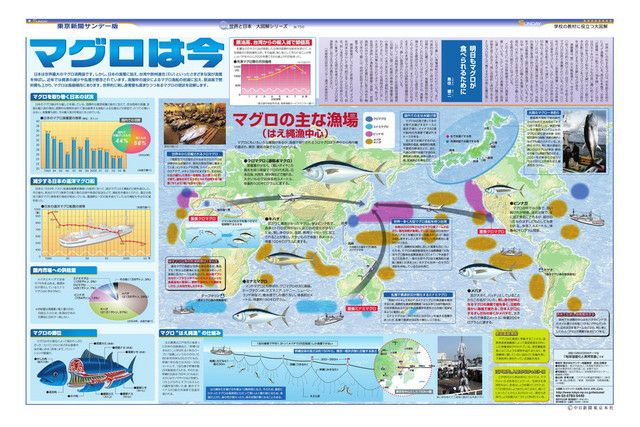 日本は世界最大のマグロ消費国です。しかし、日本の漁獲に加え、台湾や欧州連合(EU)といったさまざまな国が漁獲を伸ばし、近年では資源の減少や乱獲が懸念されています。漁獲枠の現象によるマグロ漁船の削減に加え、原油高で燃料費も上がり、マグロは高値傾向にあります。世界的に刺し身需要も高まりつつあるマグロの現状を図解します。