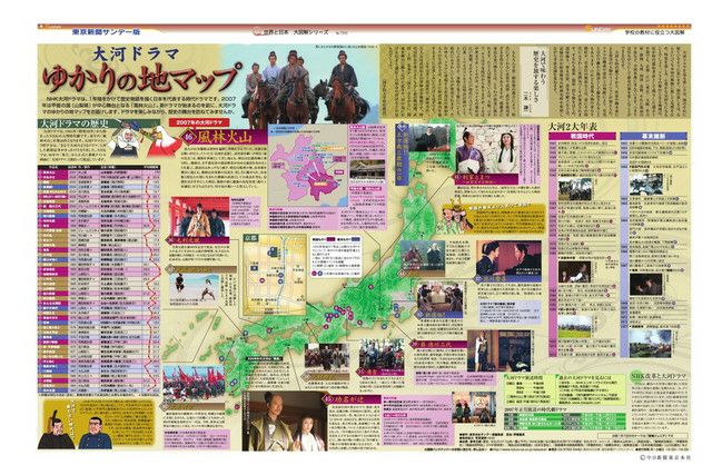 NHK大河ドラマは、1年間をかけて歴史物語を描く日本を代表する時代ドラマです。2007年は甲斐の国(山梨県)が中心舞台となる「風林火山」。新ドラマが始まるのを前に、大河ドラマのゆかりの地マップをお届けします。ドラマを楽しみながら、歴史の舞台を訪ねてみませんか。