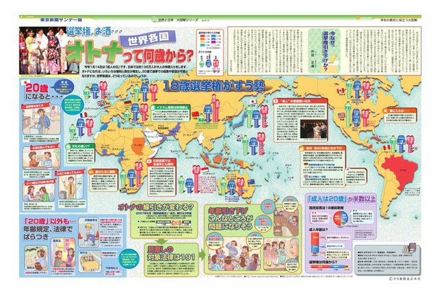 今年1月14日は「成人の日」です。日本では約135万人が大人の仲間入りをします。オトナになれば、いろいろな権利と責任が発生し、20歳で選挙での投票や飲酒が可能となりますが、世界各国は、どうなっているのでしょうか。
