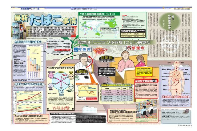 たばこの害は、がんや心筋梗塞(こうそく)をはじめとして、さまざまな病気をもたらします。そうした事情を背景に近年、受動喫煙対策の論議が高まっています。最近は値上げも話題になっています。一方で、若い世代の喫煙率は上がっています。先進国の中でも喫煙対策が遅れている日本のたばこ事情について図解します。