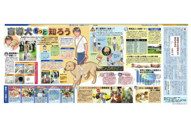 視覚障害のある人を安全に歩けるよう誘導してくれる盲導犬は全国で1045頭(2009年3月末現在)います。一方で、盲導犬と歩きたい、と希望する人の数は約7800人(日本財団調査)で、まだまだ足りません。盲導犬の現状などについて図解します。