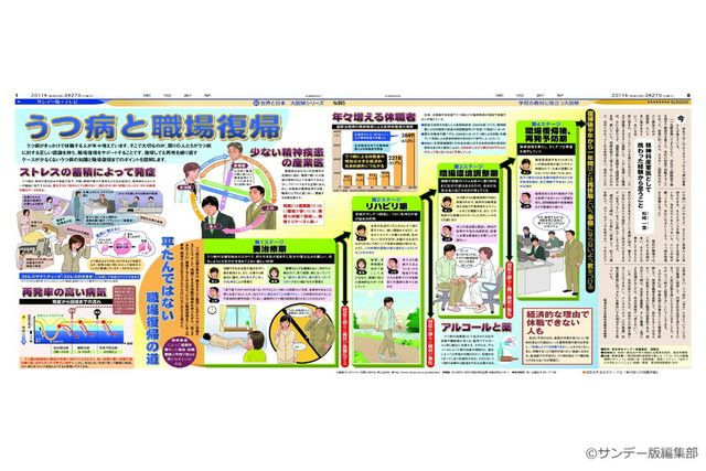 うつ病がきっかけで休職する人が年々増えています。そこで大切なのが、周りの人たちがうつ病に対する正しい認識を持ち、職場復帰をサポートすることです。復帰しても再発を繰り返すケースが少なくないうつ病の知識と職場復帰までのポイントを図解します。