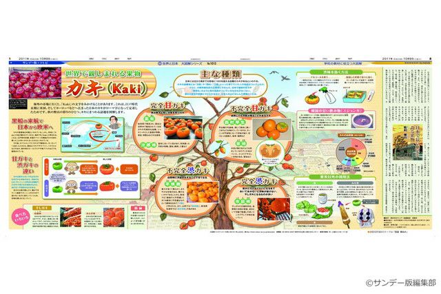 海外の市場に行くと、「Kaki」の文字をみかけることがあります。これは、江戸時代末期に米国、そしてヨーロッパなどへ広まった日本のカキがローマ字になって定着したためです。秋の野山の彩りのひとつ、カキにまつわる話題を図解します。