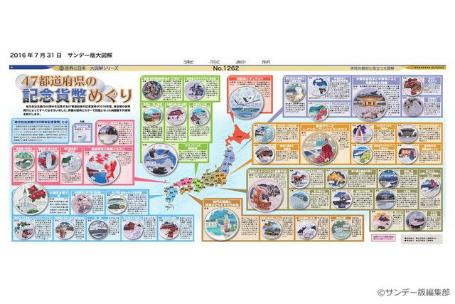 地方自治法施行60周年を記念する47都道府県の記念貨幣が2016年夏、東京都の貨幣発行によってすべて出そろいました。秀麗な図柄の中でも、カラーの純銀製千円貨幣は彩色が美しく、話題になりました。