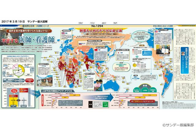 日本は公的医療保険制度が充実し、だれもが医療を受けられる皆保険が実現しています。しかし、世界では途上国を中心に、医師や看護師をはじめ、事務、清掃に関わる医療関係労働者の不足で、医療を受けられない人も多くいます。主要国でも、トランプ米大統領は国民皆保険を目指した前大統領のオバマケアの見直しに着手するなど、課題を抱えています。