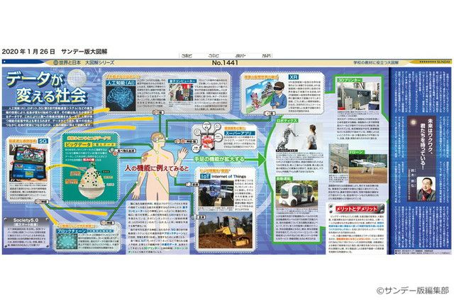 人工知能(AI)、ロボット、5G(第5世代移動通信システム)などの最先端の技術により、社会が変わり始めています。その鍵は私たちが提供するデータです。これにより人類への教委が指摘される一方で、人間が持つ機能の拡張や工場も考えられます。データがどう流れ、個々の技術とつながり、社会の変革につながるのか。人体の機能に例えて図解します。