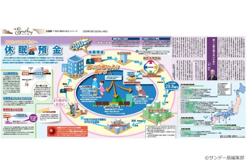 あなたが銀行などに預けたお金は10年間放置すると「休眠預金」となり、その一部は社会に役立てられていることを知っていますか。2019年から本格始動したこの制度は、子どもや若者支援など民間の公益活動団体への資金源となっています。その仕組みを図解します。