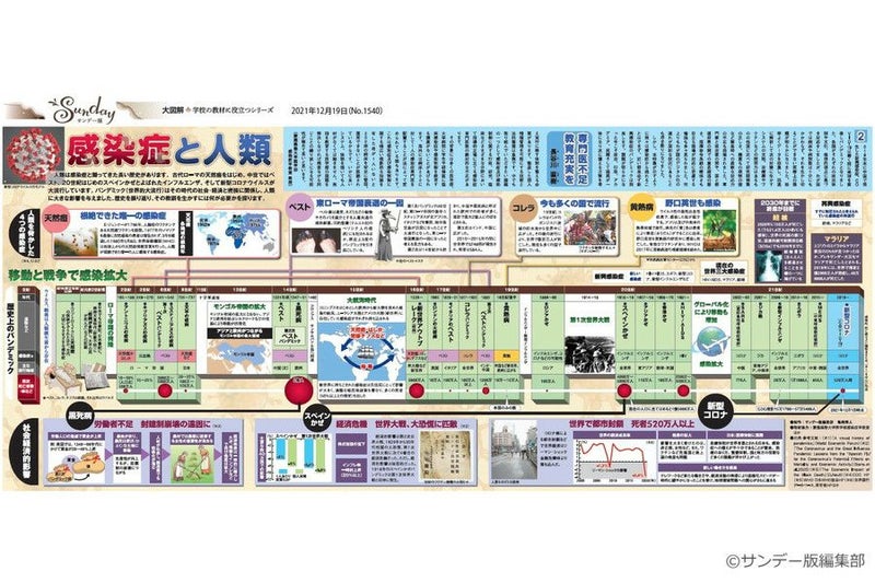 人類は感染症と闘ってきた長い歴史があります。古代ローマの天然痘をはじめ、中世ではペスト、20世紀はじめにはスペインかぜとよばれたインフルエンザ、そして新型コロナウイルスが大流行しています。パンデミック(世界的大流行)はその時代の社会・経済と密接に関係し、人類に大きな影響を与えました。感染症と人類を振り返り、その教訓を生かすには何が必要かを探ります。