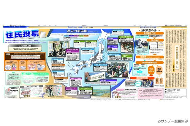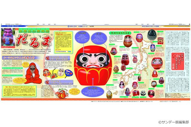 毎週日曜日の東京新聞に別刷りとして付録されている「サンデー版 世界と日本 大図解シリーズ」。 新聞見開き2ページで、大型イラストや図表をふんだんに使い、時のニュースや季節の話題を分かりやすく解説しています。
