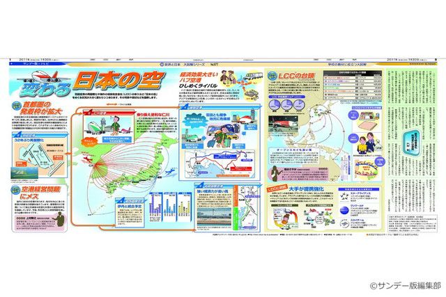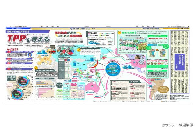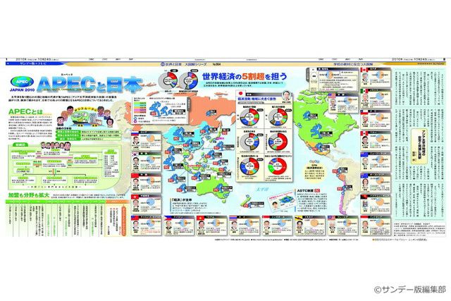 毎週日曜日の東京新聞に別刷りとして付録されている「サンデー版 世界と日本 大図解シリーズ」。 新聞見開き2ページで、大型イラストや図表をふんだんに使い、時のニュースや季節の話題を分かりやすく解説しています。