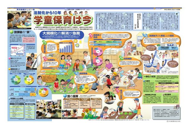 毎週日曜日の東京新聞に別刷りとして付録されている「サンデー版 世界と日本 大図解シリーズ」。 新聞見開き2ページで、大型イラストや図表をふんだんに使い、時のニュースや季節の話題を分かりやすく解説しています。