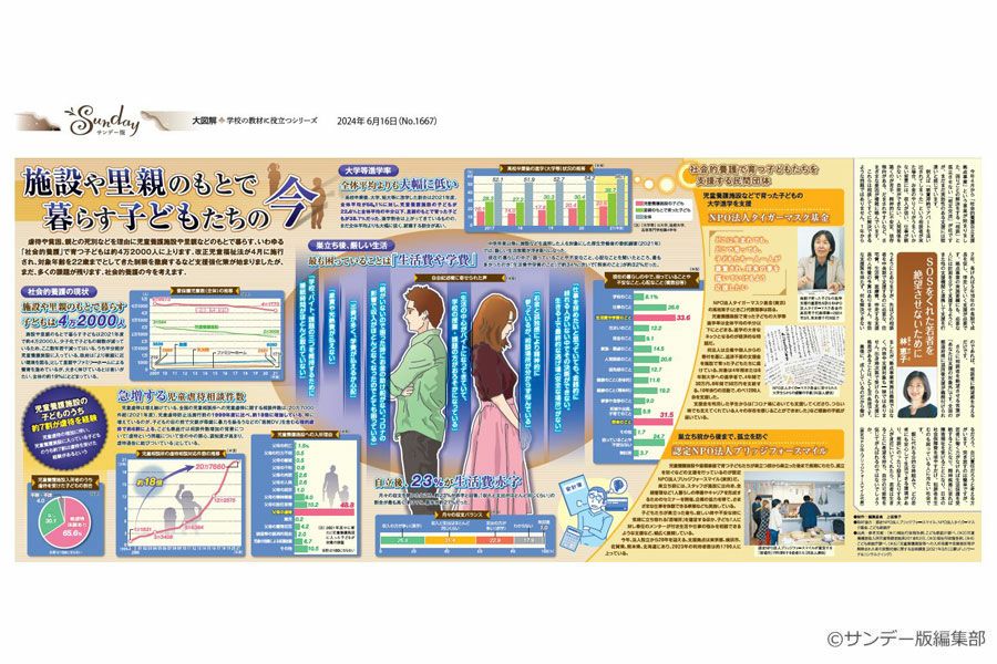 毎週日曜日の東京新聞に別刷りとして付録されている「サンデー版 世界と日本 大図解シリーズ」。 新聞見開き2ページで、大型イラストや図表をふんだんに使い、時のニュースや季節の話題を分かりやすく解説しています。