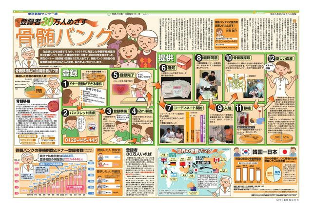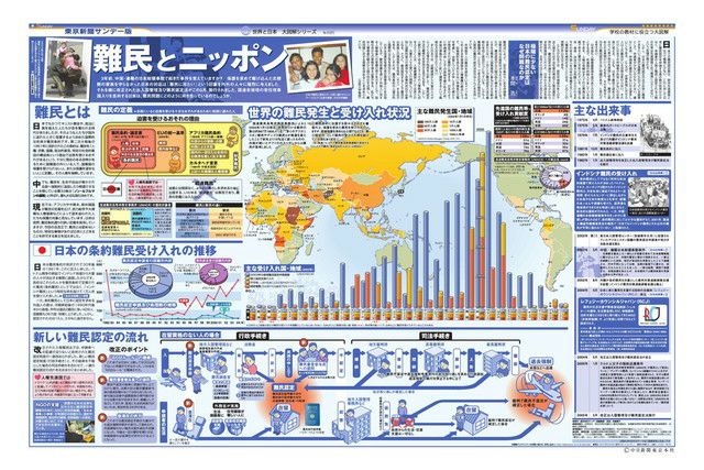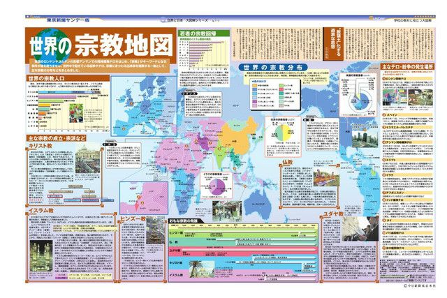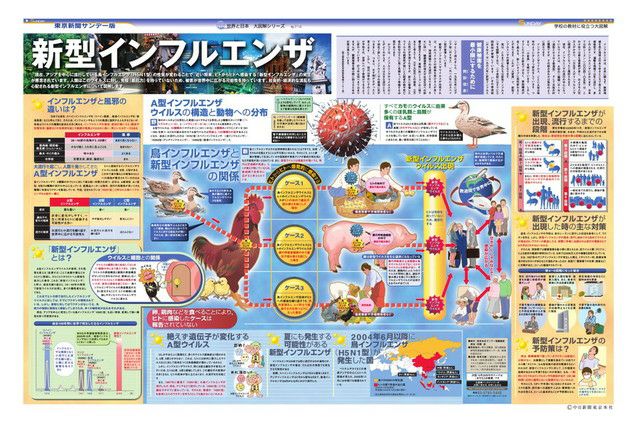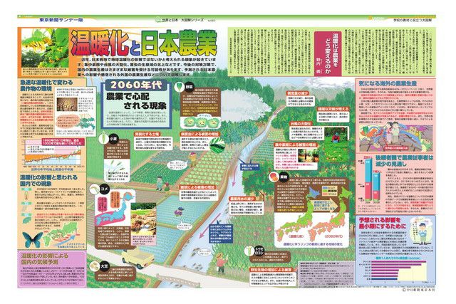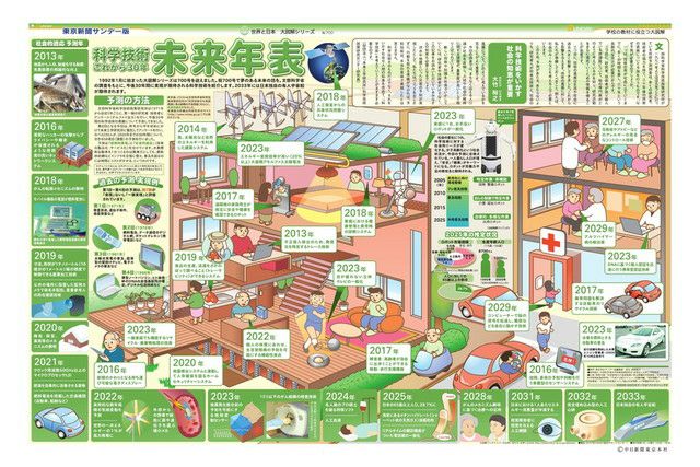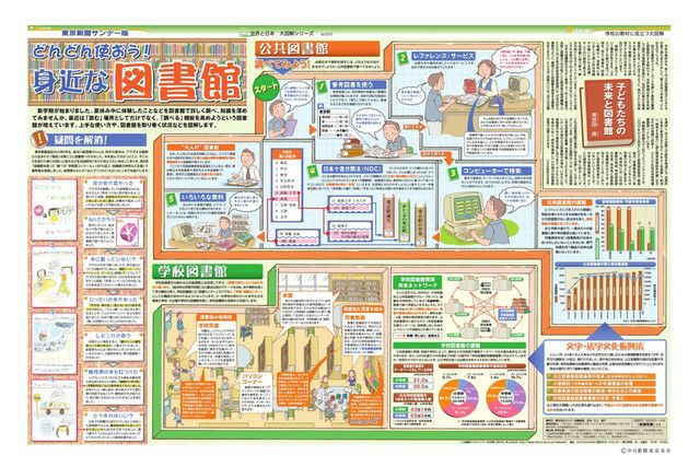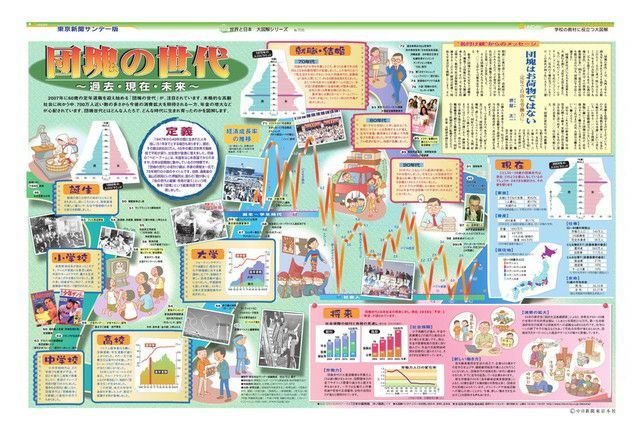 毎週日曜日の東京新聞に別刷りとして付録されている「サンデー版 世界と日本 大図解シリーズ」。 新聞見開き2ページで、大型イラストや図表をふんだんに使い、時のニュースや季節の話題を分かりやすく解説しています。