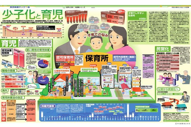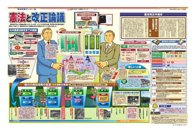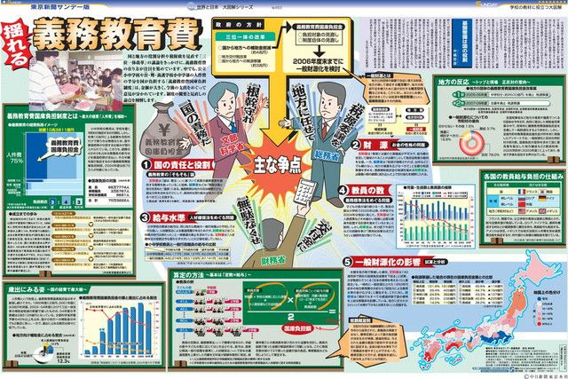 毎週日曜日の東京新聞に別刷りとして付録されている「サンデー版 世界と日本 大図解シリーズ」。 新聞見開き2ページで、大型イラストや図表をふんだんに使い、時のニュースや季節の話題を分かりやすく解説しています。