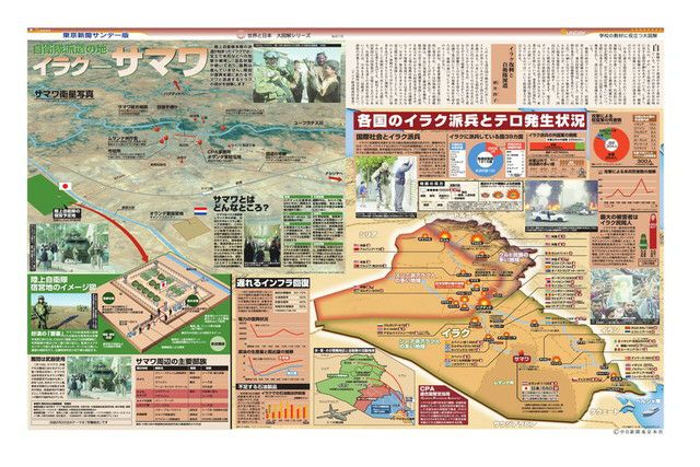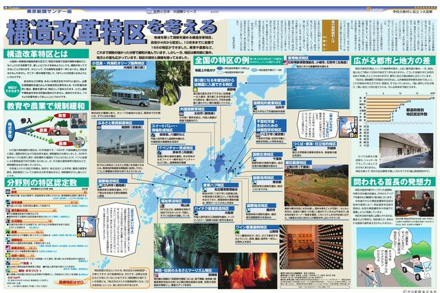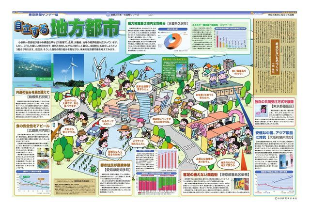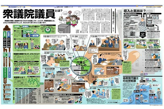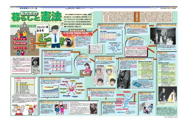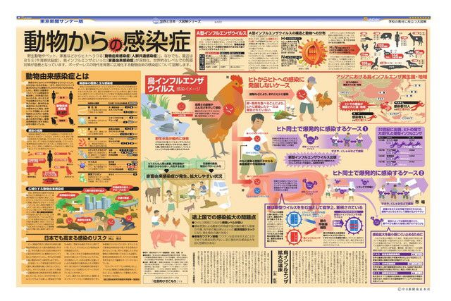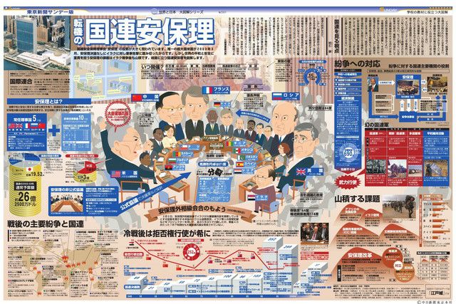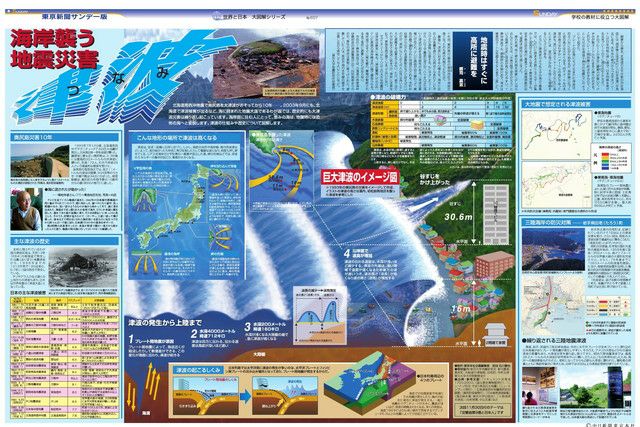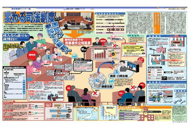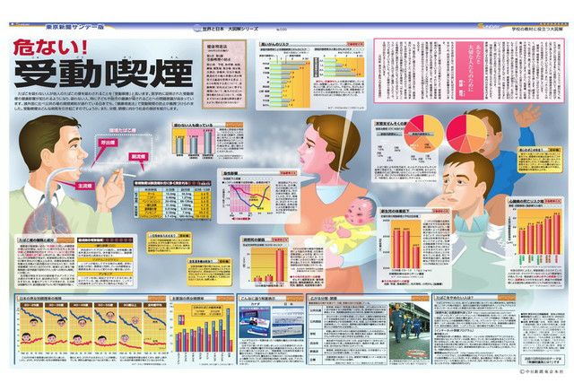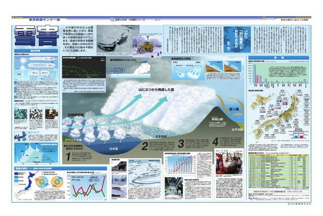 毎週日曜日の東京新聞に別刷りとして付録されている「サンデー版 世界と日本 大図解シリーズ」。 新聞見開き2ページで、大型イラストや図表をふんだんに使い、時のニュースや季節の話題を分かりやすく解説しています。