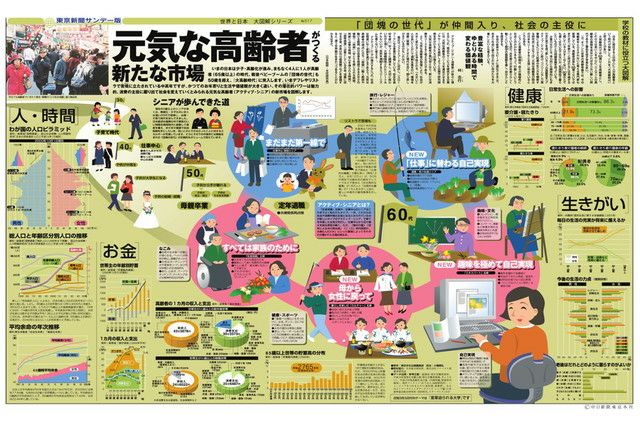 毎週日曜日の東京新聞に別刷りとして付録されている「サンデー版 世界と日本 大図解シリーズ」。 新聞見開き2ページで、大型イラストや図表をふんだんに使い、時のニュースや季節の話題を分かりやすく解説しています。