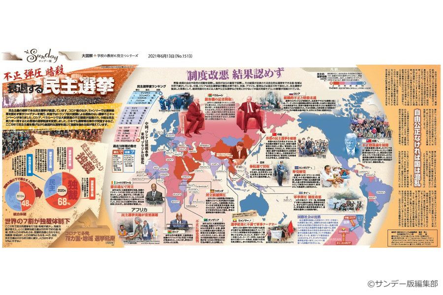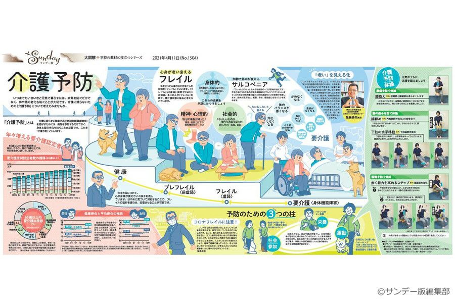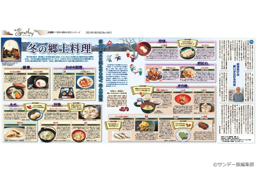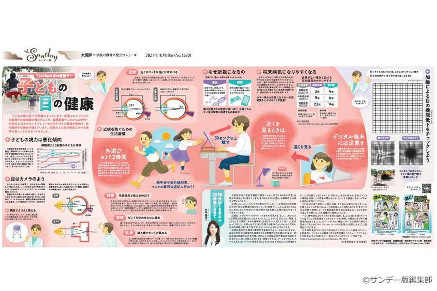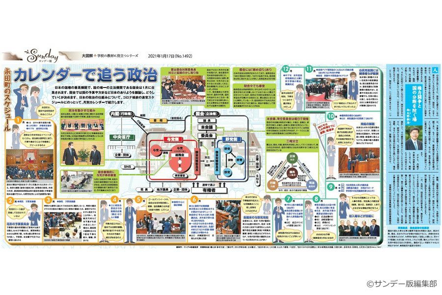 毎週日曜日の東京新聞に別刷りとして付録されている「サンデー版 世界と日本 大図解シリーズ」。 新聞見開き2ページで、大型イラストや図表をふんだんに使い、時のニュースや季節の話題を分かりやすく解説しています。