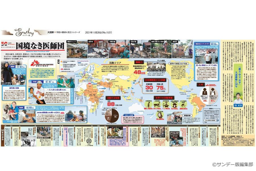 テーマは、国際問題から政治、経済、社会、文化、科学まで多岐にわたり、文字通り「目で見て分かる紙面」です。