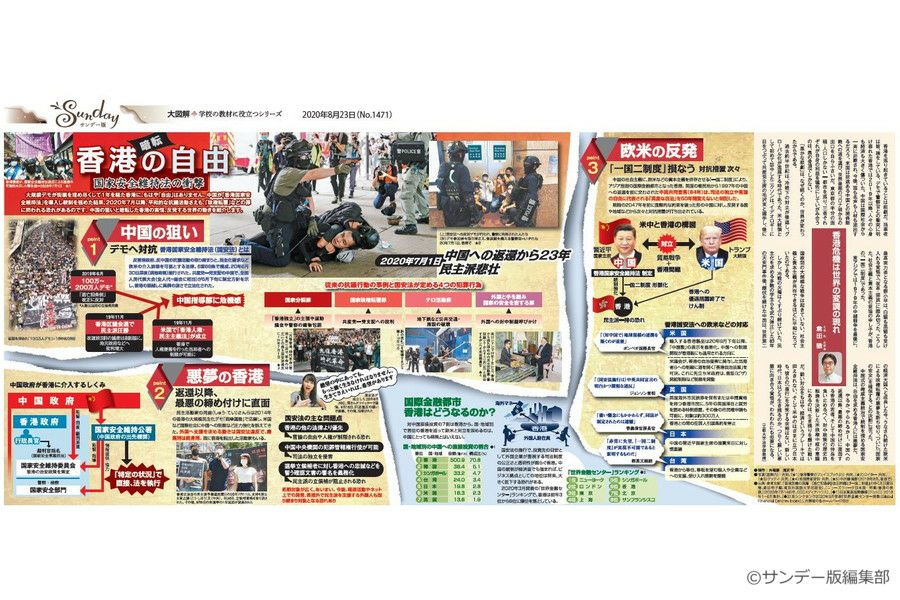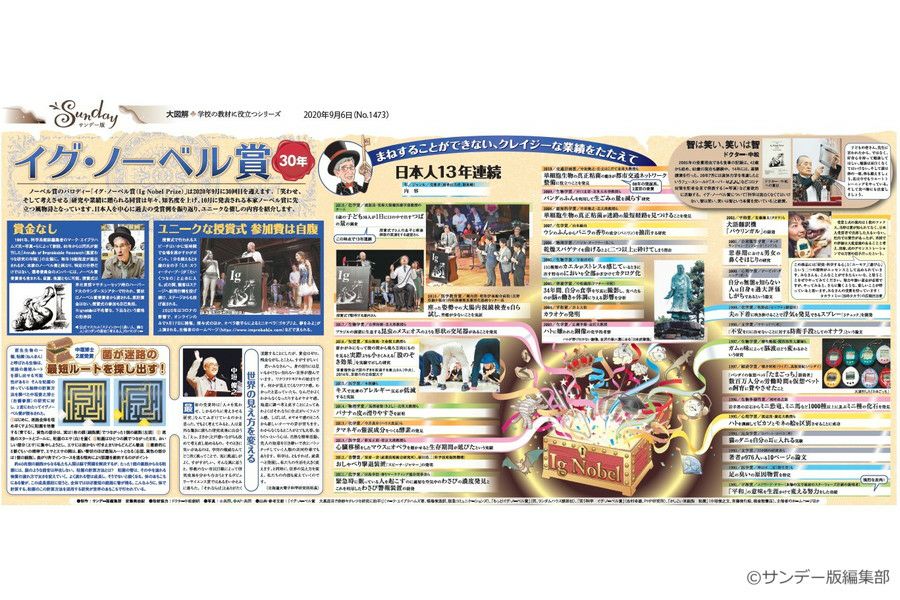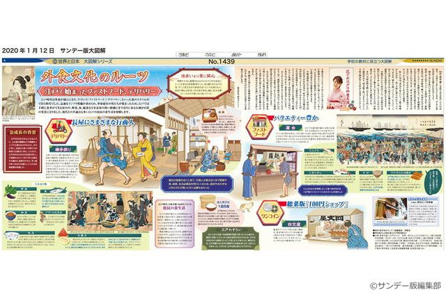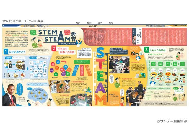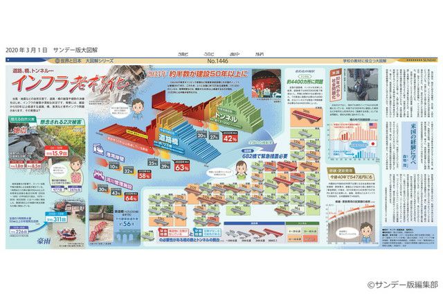 毎週日曜日の東京新聞に別刷りとして付録されている「サンデー版 世界と日本 大図解シリーズ」。 新聞見開き2ページで、大型イラストや図表をふんだんに使い、時のニュースや季節の話題を分かりやすく解説しています。