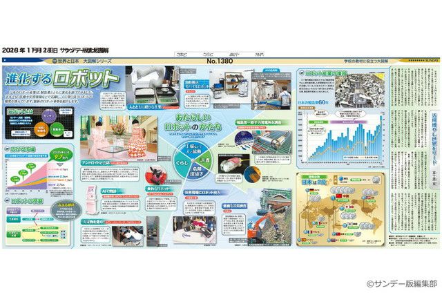 毎週日曜日の東京新聞に別刷りとして付録されている「サンデー版 世界と日本 大図解シリーズ」。 新聞見開き2ページで、大型イラストや図表をふんだんに使い、時のニュースや季節の話題を分かりやすく解説しています。