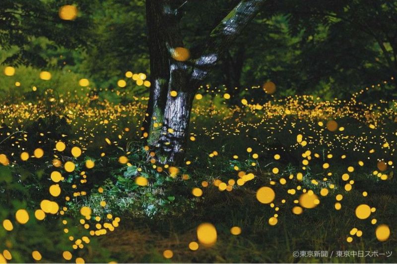 同市内では五月下旬~六月上旬に雑木林や畑などで見られ、ピークの午後十時ごろになるとシンクロするようにタイミングを合わせて点滅。訪れた地元住民らは天然のイルミネーションにうっとりと見入っていた。