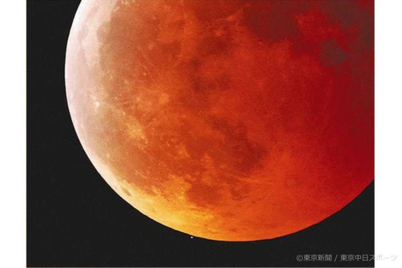 国立天文台によると、皆既月食は太陽と地球、月が一直線に並ぶことで起きる。昨年五月二十六日以来約一年半ぶりで、皆既食中に惑星食が起きるのは安土桃山時代の一五八〇年以来四百四十二年ぶりという。