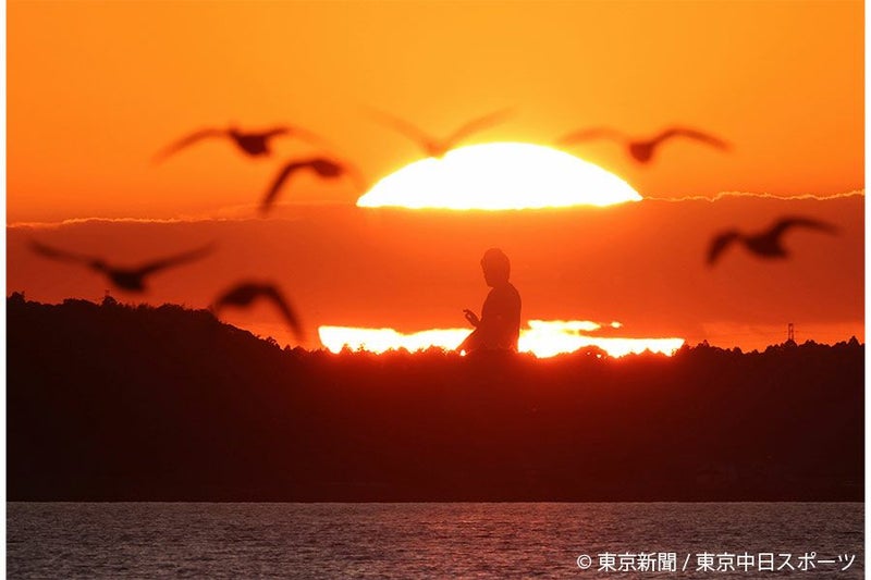 約20キロ離れた霞ケ浦の湖畔(同県行方市)から、600ミリの超望遠レンズに、1.4倍のテレコンバーターを取り付けて狙った。大仏と太陽が絡む時間はあっという間。太陽の中央に大仏が収まるよう、ファインダーをのぞいては小走りで移動し、撮影位置の調整を繰り返した。