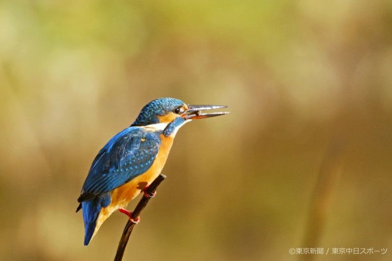 横浜市戸塚区の舞岡公園で今月上旬、カワセミに出会った。「チー」と鳴いて現れ、水中に飛び込んでメダカほどの魚を捕らえて、枯れ茎で食べた。運良く冬晴れの斜光線にきらめいて、枯れ野の風景にコバルトブルーの姿が美しかった。